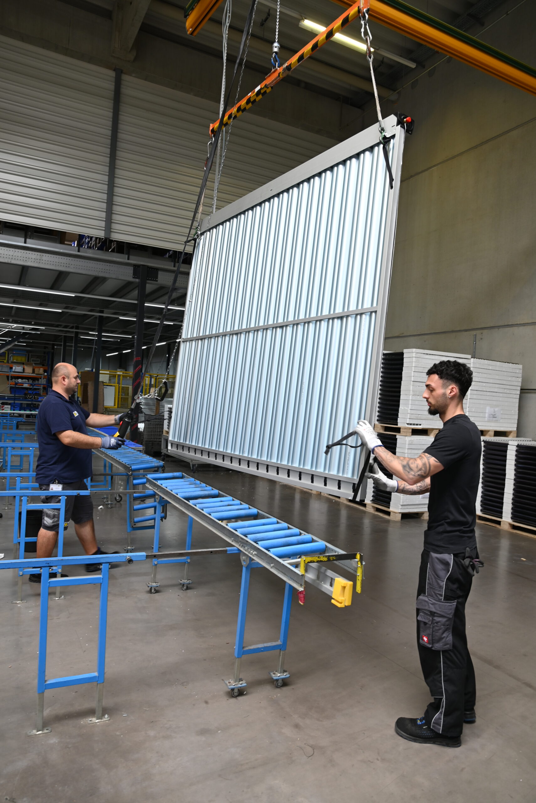 Der finale Solarthermiekollektor Nummer 13.224 wird angehoben und für Verladung und Versand zum Leipziger Solarfeld vorbereitet. Foto: Ritter XL Solar
