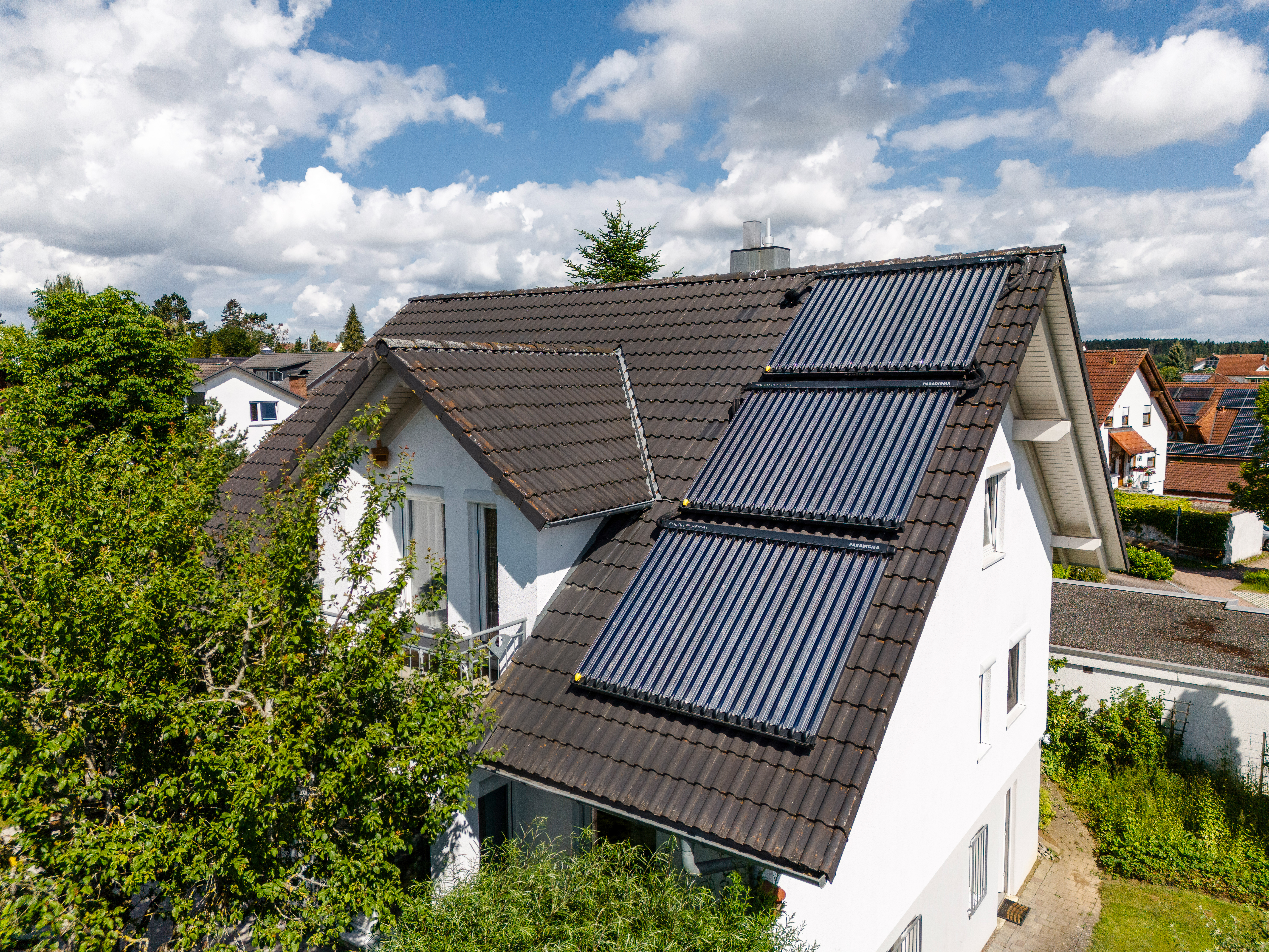Ein Einfamilienhaus mit unseren leistungsstärksten Solarthermiekollektoren Paradigma Aqua+. Foto: Sebastian Berger