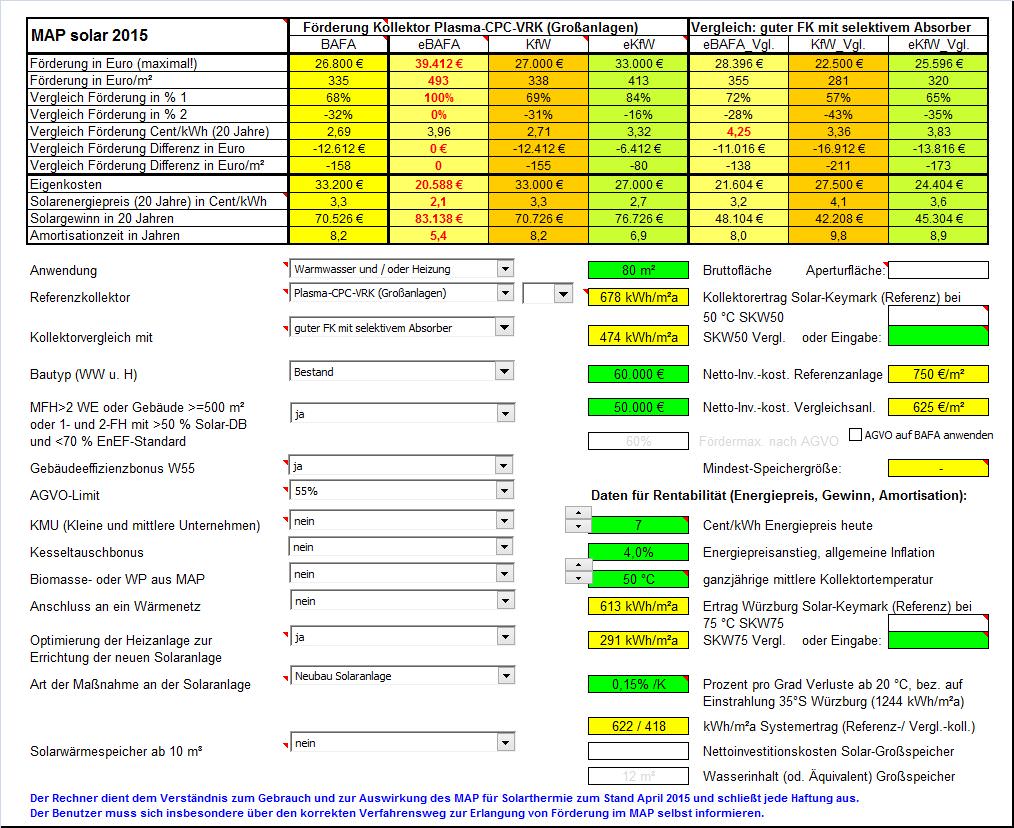 Selbstredend, dass der Anbieter des Tools die Haftung für die Richtigkeit der Daten ausschließt, denn im Ernstfall muss man sich natürlich selbst über das Antragsverfahren und die Förderung im Marktanreizprogamm (MAP) informieren.