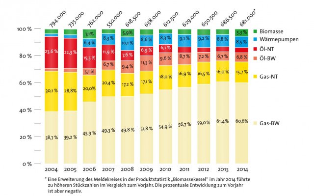 Absatz Wärmeerzeuger Deutschland von 2004 bis 2014