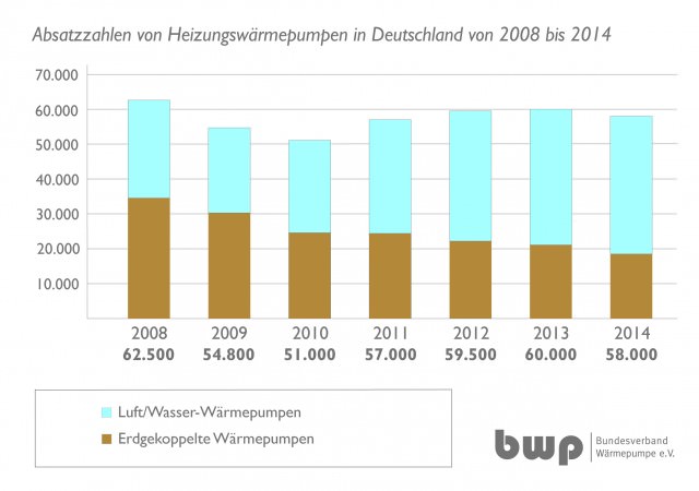 Kann man wirklich von einem Wärmepumpen Boom sprechen? Werfen wir einen Blick auf die Zahlen: In den letzten Jahren wurden allein in Deutschland jedes Jahr um die 60.000 neue Heizungswärmepumpen eingebaut. Auch wenn 2014 ein leichter Rückgang zu verzeichnen war, ist ein nennenswerter Einbruch nicht in Sicht. Auch weltweit erfreuen sich Wärmepumpen großer Beliebtheit. Dabei muss man unterscheiden: Während die effizientere Erdwärmepumpe immer seltener eingebaut wird, steigt der Anteil an Luftwärmepumpen, wie man auch an dieser Grafik sieht: